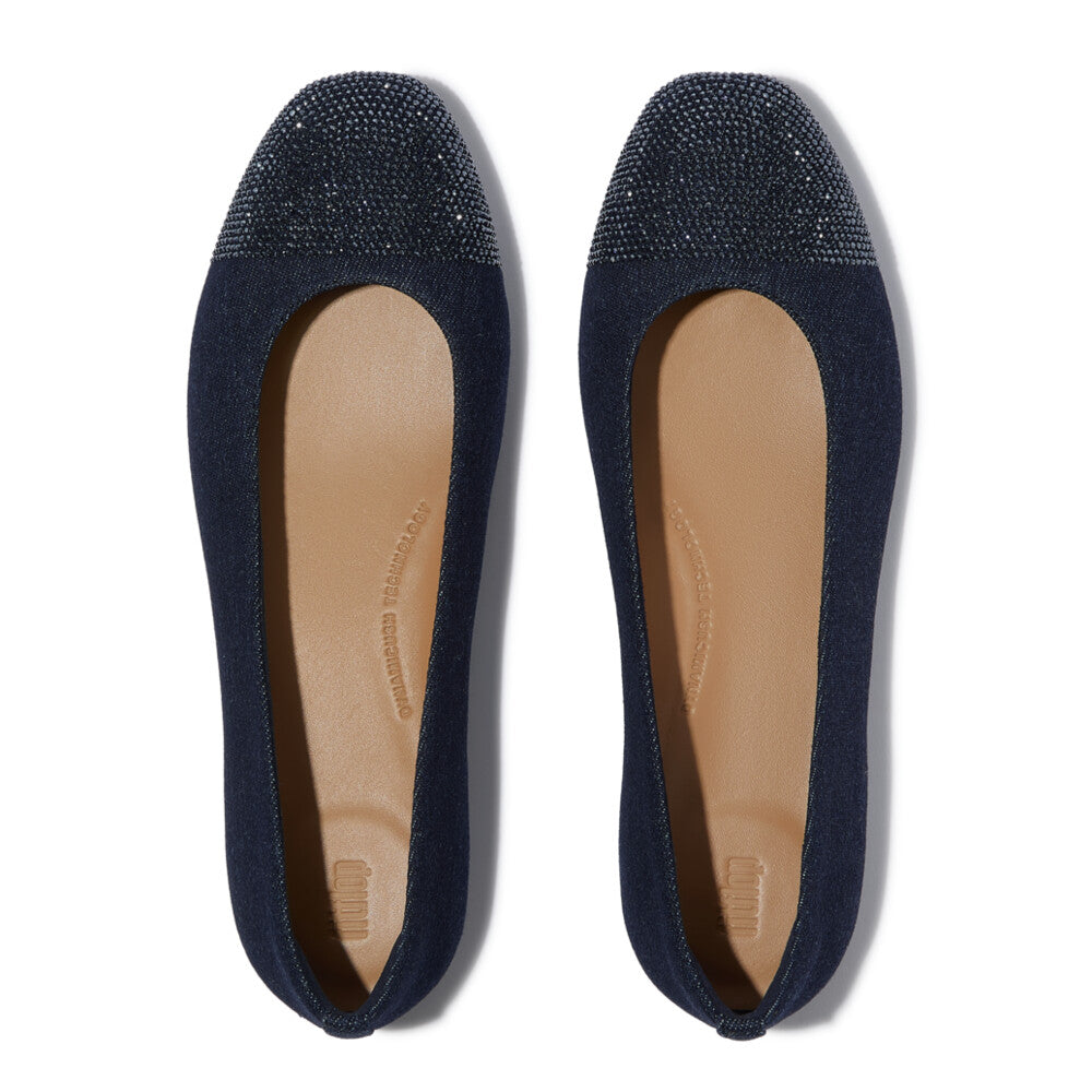 Crystal Cap-Toe Denim Ballerinas