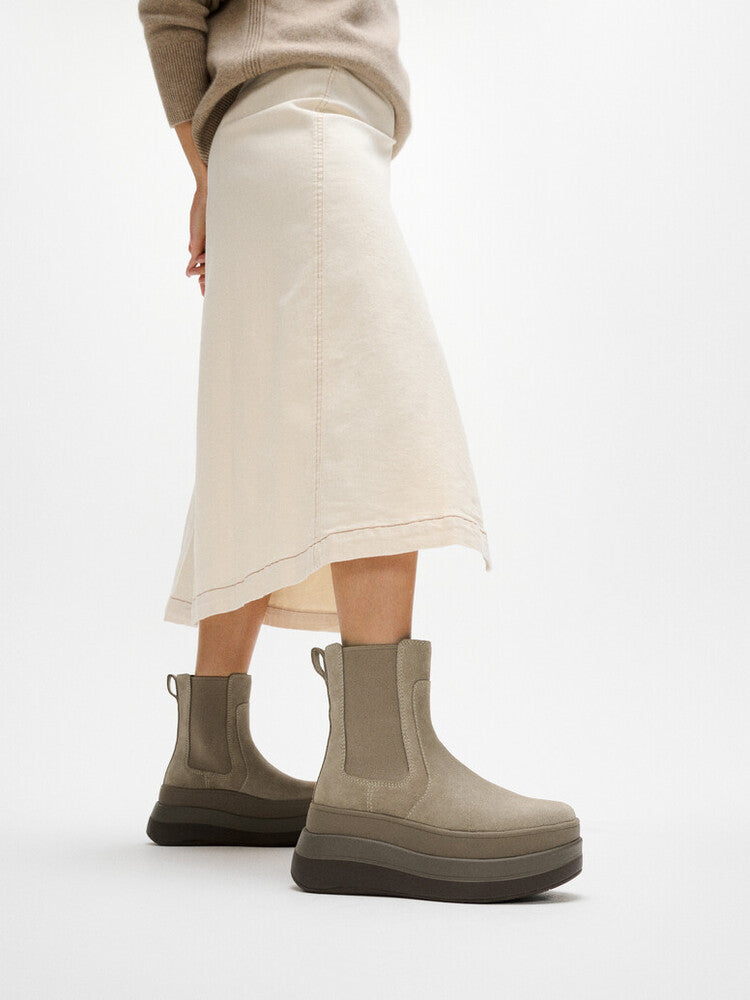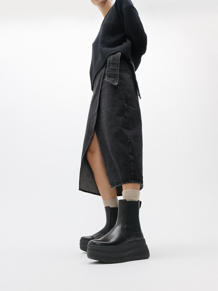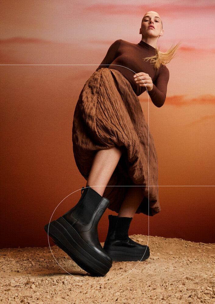 Our F-Mode reimagined as a high stacked statement Boot. This boot has sculptural lines, directional style and is engineered to be as comfortable as a platform gets.