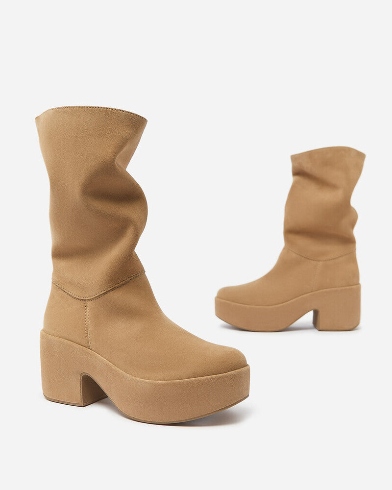 # PLATFFORM Slouch Boot Discover relaxed elegance with the PLATFFORM Slouch Boot, featuring sumptuous all-over suede construction. This laid-back design offers a comfortable, forgiving fit that adapts to your foot's natural shape. The cushioned platform sole delivers reliable support for all-day wear, while the soft suede upper provides a luxurious touch. Whether you're running errands or heading out for the evening, this versatile boot pairs effortlessly with your everyday wardrobe. Experience the perfect balance of comfort, support, and understated sophistication.